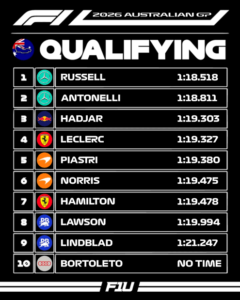 S devetog startnog mjesta, Lindblad je u odličnoj poziciji da osvoji svoje prve bodove već u debiju. Njegov mentor Max Verstappen startat će s dna grida, što mladom vozaču otvara još više prostora da se dokaže kao vodeći Red Bullov junior na stazi u nedjelju.
